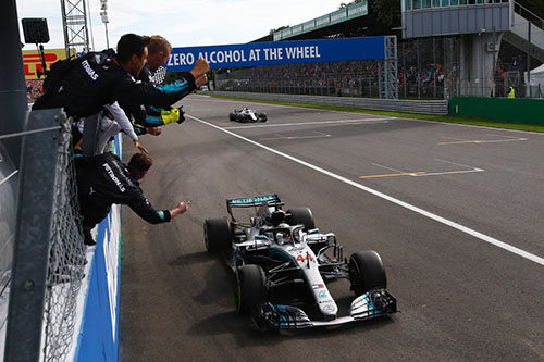 Victoria del piloto inglés Lewis Hamilton por delante de Raikkonen y Bottas con Vettel cuarto después de un error en la primera vuelta. Aún faltaban veinte minutos para el inicio de la carrera cuando Lewis Hamilton comenzó a ganar la carrera. Hablábamos de presión hace unos días. Y de Ferrari. Y de Vettel. En realidad empezó a ganar mucho antes, quizá haciendo ver a los Ferrari que eran muy superiores a su Mercedes. Sí, pero no tanto. Porque cuando los semáforos se apagaron en el increíble circuito de Monza comenzó otra carrera y el piloto británico se lanzó a por una victoria en la que creía a pesar de que todo el mundo veía ya a su rival alemán subido al podio del autódromo feliz ante los tifossi. Hubo incluso algún periodista que habló de dejarse bigote si no ganaba un Ferrari. Lo daban por hecho. Todos, menos Hamilton.Raikkonen salió bien, pero ya en la primera curva el inglés se tiró a por Sebastian y se tocaron. En la segunda ocurrió todo. Lewis estaba ya por delante tras una gran frenada y Seb se echa un lado, se tocan y el alemán hace un trompo y se queda último. Coche de seguridad en pista. Problemas en el Toro Rosso de Hartley. Bueno para Vettel y su remontada.Poco después llega la primera gran batalla de una bonita guerra entre Hamilton y Raikkonen. El Mercedes pasa al Ferrari, pero después Iceman vuelve a adelantar a su rival. Tremendo. A partir de ahí varias carreras en una, la de la victoria, la del podio entre Bottas y Verstappen, la de Vettel por quedar lo más arriba posible, la de Sainz por los puntos, la imposible de Alonso…El asturiano en uno de sus grandes premios más especiales quería dar espectáculo, salía decimotercero y llegó a ser décimo, ganó frenadas a un Checo Pérez casi 20 km/h más rápido que el suyo, pero… en la vuelta diez abandonó con problemas en su McLaren. Hamilton y Kimi entra antes a boxes, líder, es el momento del Hammertime, le dicen al inglés. “Hamilton está fuera, tienes que tirar ahora Kimi, momento crítico”, le dicen a Raikkonen. El finlandés hace vuelta rápida, después Lewis. Batalla total. El de Ferrari entra antes de tiempo por un engaño de Mercedes, sacaron a los mecánicos, se volvieron a meter, pero Ferrari entró. Eso provocó que los neumáticos de Raikkonen sufrieran, se viniesen abajo y por eso al final llegó la remontada de Hamilton. Y la ayuda de Bottas. Hamilton sale a cuatro segundos, pero en ese momento Valtteri que no había parado aguanta a su compatriota hasta que llega el inglés a menos de un segundo. Prepara el adelantamiento y en la vuelta 45 destroza al campeón de 2007, se pone líder y acaba ganando la carrera.Por detrás un nuevo episodio de Verstappen y su agresividad, echa a Bottas de la pista y le ponen cinco segundos. Al final podio merecido del otro Mercedes. Y mientras Vettel llegó hasta el cuarto puesto con el misil rojo, se queda a 30 puntos de Hamilton.Hamilton eleva a 40 ptos la ventaja en el mundial, Bottas a 5 ptos de Kimi. Mercedes tiene ya 25 ptos de margen en un campeonato de constructores en el que Renault y Haas están empatados en el 4º puesto. Racing Point Force India es ya 8º y tiene a Toro Rosso a 2 ptos.