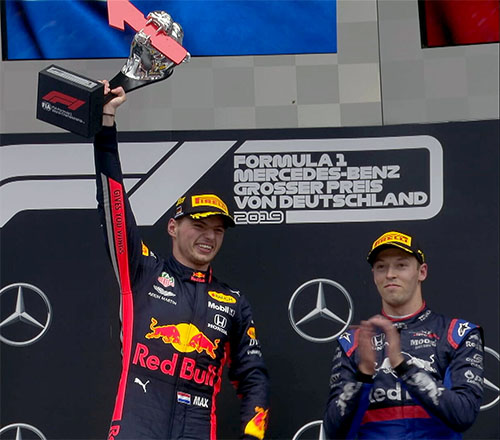 Locura absoluta en Hockenheim y triunfo épico de Verstappen; Vettel fue segundo y Kvyat, con Toro Rosso, tercero. Sainz rozó el ’cajón’, pero le pasaron por estrategia y acabó quinto. Accidentes de Bottas, Leclerc y Hamilton.Caos absoluto en Hockenheim, de lluvia a seco, de seco a lluvia, coches de seguridad, accidentes. Locura en el asfalto, Fórmula 1 en estado puro, y Max Verstappen, sonriendo debajo del casco. Victoria épica del holandés de Red Bull en el GP de Alemania más inexplicable que se recuerda, colapso de los Mercedes como un día antes hizo Ferrari y, podio inexplicable que completaron Vettel y el Toro Rosso de Kvyat. El alemán remontó en las últimas 15 vueltas lo que parecía una de sus peores carreras de siempre, incapaz de igualar el ritmo de los de cabeza, pero los tetracampeones siempre vuelven a tiempo.El ruso dio un podio impensable a Toro Rosso gracias a la estrategia: montaron gomas de seco en el penúltimo coche de seguridad, al igual que Stroll, y ambos se plantaron segundo y tercero para disputar las vueltas definitivas. Sobrevivió Daniil, tercero, y acabó cuarto Lance. Y Carlos Sainz rozó el ‘cajón’ soñado: quinto final, pero claramente perjudicado por esa maniobra de Kvyat y Stroll, porque era el tercero de entre quienes seguían la misma estrategia.¿Y Hamilton, Bottas y Leclerc? Mejor empezar por la salida, pésima de Max, igual que en Austria, idéntico final. Se escapó Lewis y le siguió Valtteri, amenazaban con lo de siempre pero la lluvia aún era intensa y las condiciones de pista eran cualquier cosa menos ideales. Sergio Pérez se fue al muro y provocó el primer ‘safety car’, pero en general las incorrecciones eran constantes, más cuando algún intrépido se lanzó con gomas lisas para saltar en los charcos.Todos contra el mismo muroEl agua consumió los méritos de varios personajes que fácilmente pudieron ser el héroe del día. Primero Leclerc, valiente hasta el punto de plantarse segundo, entonces tras Lewis, y aspirar a una victoria que bien habría sido balsámica para su escudería. Pero no, acabó contra el muro de la última curva. Después el propio Hamilton, en pleno ecuador de la prueba y aplicando un serio correctivo a toda la parrilla sobre mojado, pecó de optimista con neumáticos de seco y… acabó contra el muro de la última curva. Al menos él supo salir del entuerto y entrar en boxes para cambiar el alerón delantero y los neumáticos, aunque como nadie estaba avisado la parada duró más de un minuto.Eso plantó a Hulkenberg segundo, en posición de podio, aunque no tardaron mucho los Mercedes en darle caza, primero Bottas y luego el campeón. Iba cuarto, por tanto, el Renault del alemán, hasta que restó importancia a una leve salida por la escapatoria y… sí, acabó contra el muro de la última curva. El propio Carlos hubiera aspirado quizás a un premio mayor si no hubiese perdido el control de su McLaren para, precisamente, acabar rozando el muro de la última curva. Ahí, también ahí destrozó su monoplaza Bottas cuando perseguía a Stroll en los últimos compases de la carrera.Pero con el asfalto secándose a toda velocidad, con ventaja total para quienes apostaron por el neumático rojo antes que el resto, se relanzaron las últimas cuatro vueltas y se escapó definitivamente el mayor talento de la parrilla actual, Max Verstappen. Vettel remontó a tiempo para ser segundo por delante del ruso más feliz del planeta tierra. Stroll cuarto, Sainz sólo quinto. Albon sexto, seguido de Raikkonen, Giovinazzi, Grosjean y Magnussen. Acabaron sólo trece coches, porque Gasly fue embestido por el tailandés de Toro Rosso y Norris y Ricciardo tuvieron averías de motor. Fuera de los puntos, undécimo, finalizó Lewis Hamilton. Nada se explica en Hockenheim, por eso la F1 es el mayor espectáculo sobre ruedas.