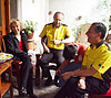 La comida era en honor al 38 aniversario luctuoso de Pedro y durante más de una hora los casi 50 miembros de la Scuderia y la Scuderia Júnior presentes estuvieron departiendo alegremente, hasta que a las 4:00 PM Carlos llamó a comer. Había un fettucini en salsa de ajo, salmón en posta con hierbas finas, y ensalada de lechiga mini con cebolla roja, jitomate y aguacate en vinagreta, lo cual fue ampliamente alabado por los presentes, siendo recetas de la esposa de Carlos, Lupita.